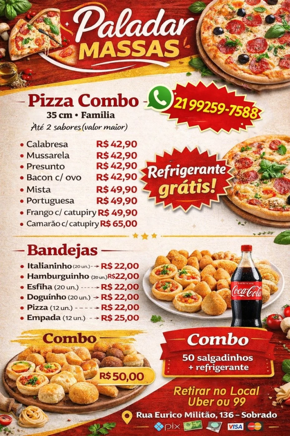 Massas em São Gonçalo. Descubra o sabor inigualável de nossos salgados assados e fritos, além das deliciosas pizzas que preparamos com amor e qualidade. Venha experimentar o melhor da gastronomia local!